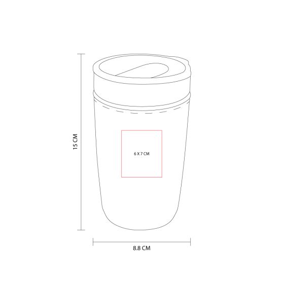 Quick ViewVaso de acero inoxidable doble pared con tapa de plástico y manga de silicón. Fabricado en materiales de grado alimenticio, mantiene bebidas frías o calientes por un largo tiempo. No usar en microondas. Capacidad de 510 ml. Incluye caja de cartón individual
