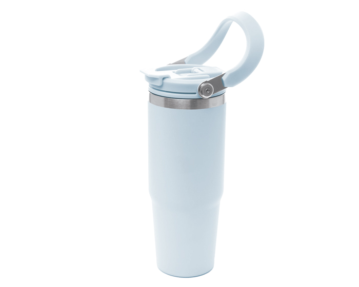 Quick ViewTermo con doble pared de acero inoxidable con tapa traslúcida y cierre a presión, boquilla de seguridad de plástico, boquilla de silicón cubre popote y popote metálico incluido.