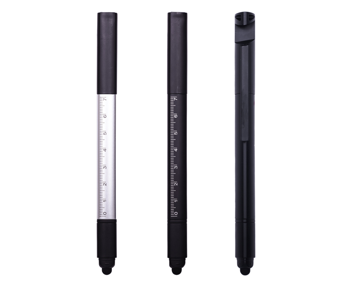 Quick ViewBolígrafo de plástico 5 en 1, diseño de cuerpo triangular que cuenta con regla de 7 cm. Punta touch para pantallas táctiles. Se puede utilizar como desarmador incluye 2 puntas plano y de cruz que se fija y guarda en el cuerpo de la pluma. Tapa extraíble diseñada para usarse como base de teléfono celular.