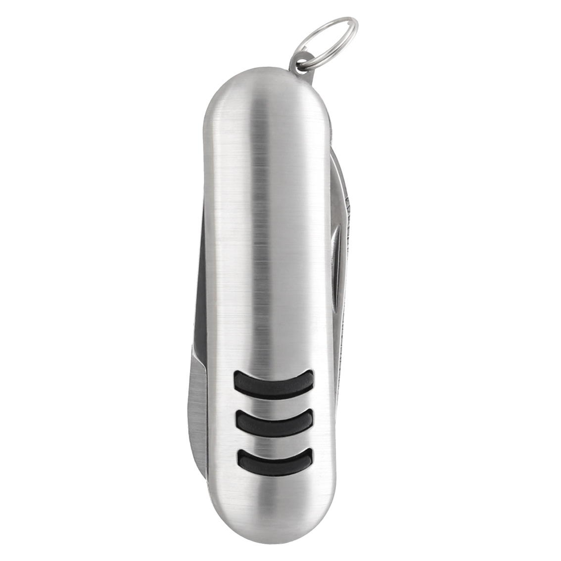 Quick ViewMini navaja metálica multiusos con 6 funciones que contiene: 2 destapadores, 1 con punta plana, navaja, sacacorchos, desarmador de cruz y arillo para usar como llavero.