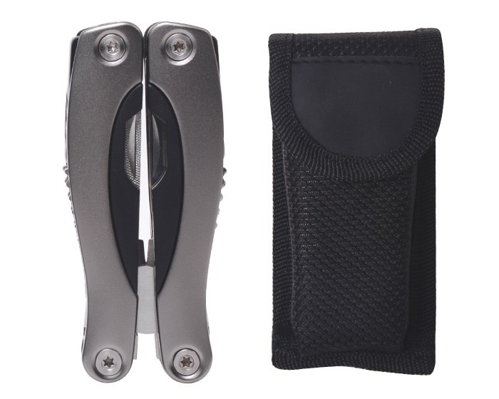 Quick ViewHerramienta plegable con 9 funciones: pinzas de punta, navaja, dos desarmadores planos y un desarmador de cruz, sierra, destapador doble, abrelatas y lima. Con superficie antideslizante para mejor manipulación. Cuenta con seguro de bloqueo para fijar cada herramienta. Incluye estuche de tela. Presentación: caja en color negro.