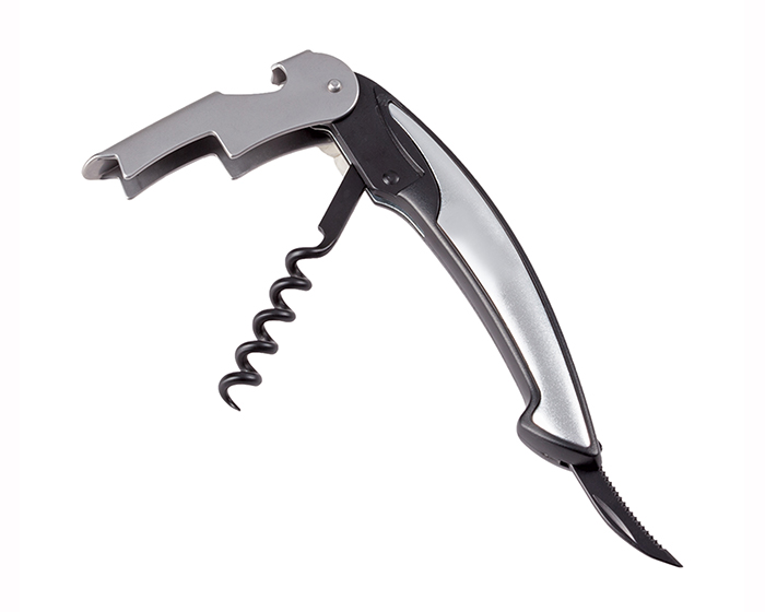 Sacacorchos con destapador y navaja de acero inoxidable. Presentación: caja blanca.