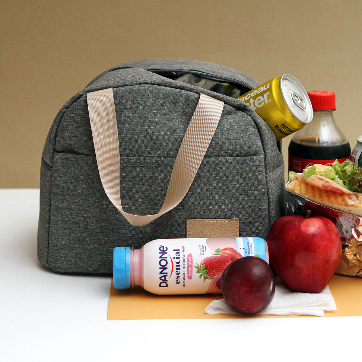 Quick ViewLonchera de interior térmico con bolsa de malla en el interior, 1 bolsa frontal con cierre y dos asas reforzadas con botón.
