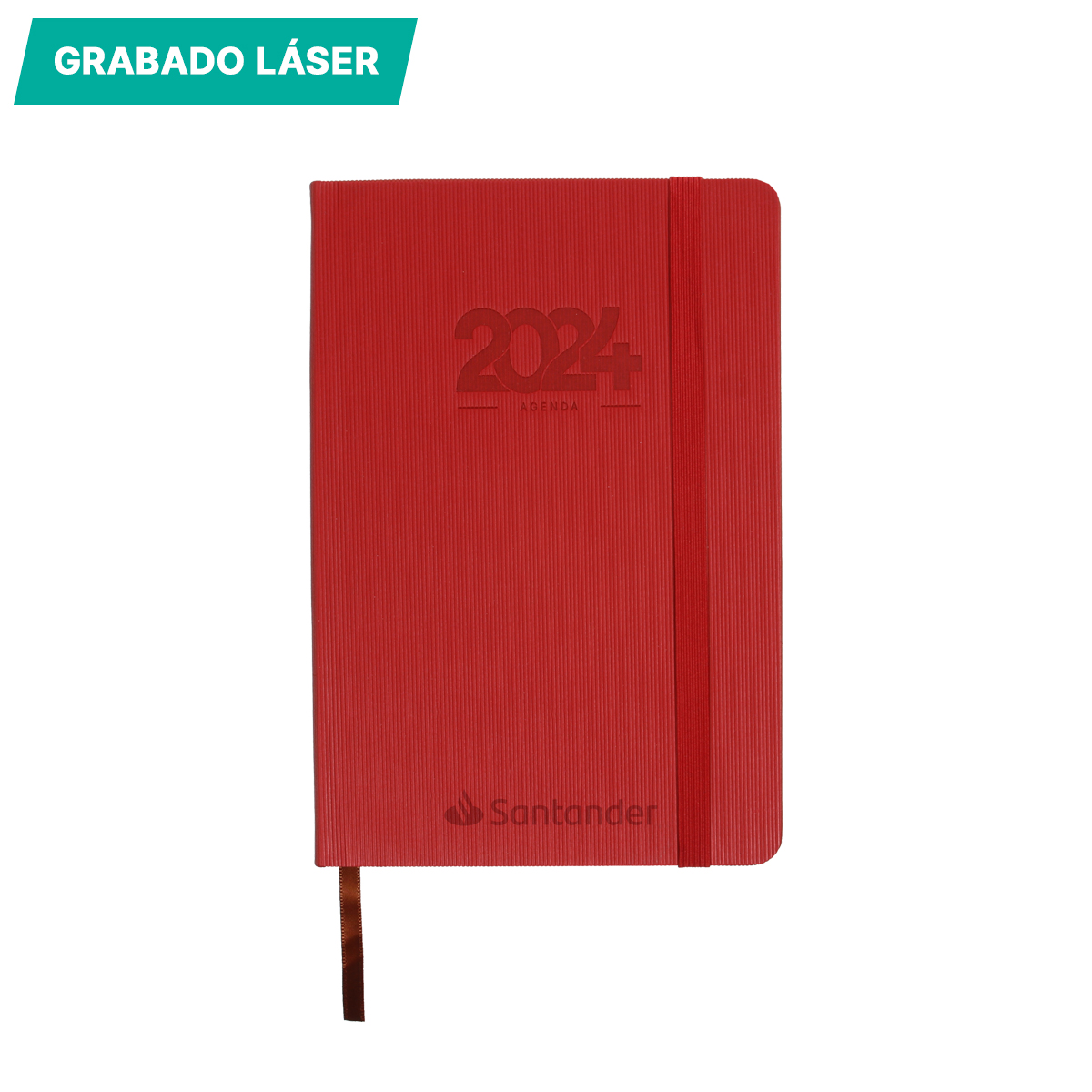 Agenda diaria con calendario de 2022 a 2026. Dentro de sus apartados contiene: datos personales, teléfonos de emergencia y festividades personales. Incluye bolígrafo.