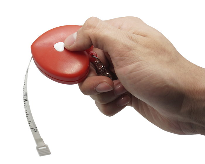 Llavero en forma de corazón, con cinta medidora plástica.