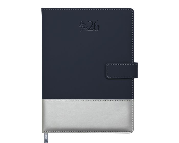 Agenda semanal de pasta rígida bicolor, de PU con cintillo magnético para cerrar y resorte para bolígrafo. Cuenta con 98 hojas (196 páginas), contenido: cuadro de dedicatoria, hoja de datos personales, calendario 2026 y días festivos, calendarios 2025 a 2029, planificador anual de gastos, planificador de proyectos (5), planificador anual, planificadores mensuales (12), agenda semanal, directorio de contactos, teléfonos de… Ver más