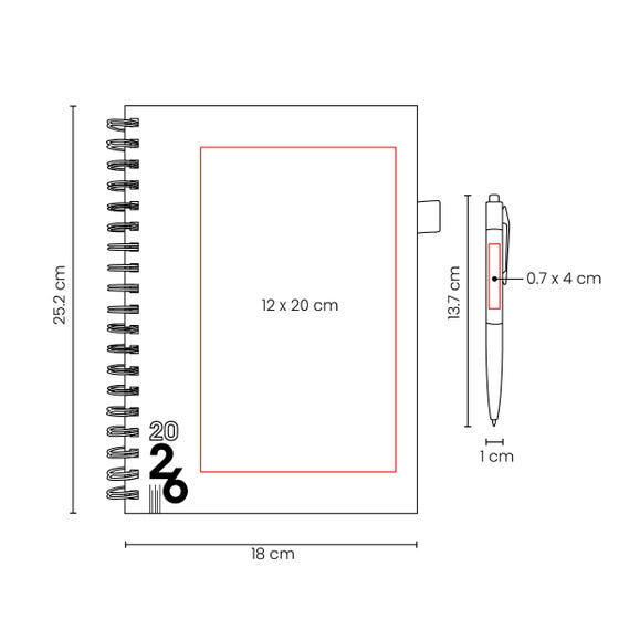 | Medida | 18 x 25.2 cm Agenda / 1 x 13.7 cm Bolígrafo |