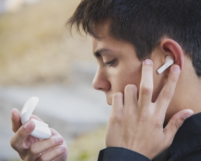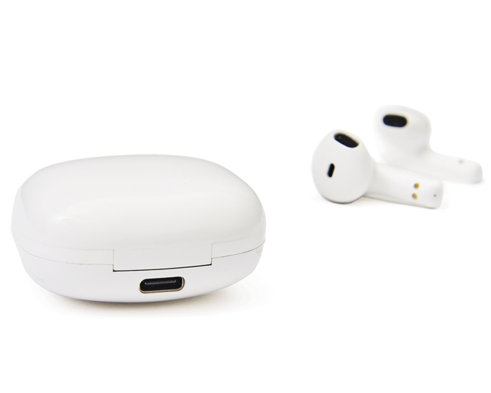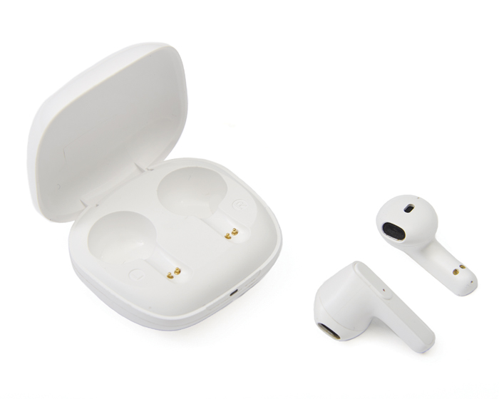 Audífonos inalámbricos bluetooth con función manos libres con estuche de 500 mAh, entrada de carga tipo C. Cuenta con indicadores de luz LED, botón touch para encender, apagar y pausar el audio. Duración aprox. de reproducción 45 min. Compatible con IOS y Android. incluye cable cargador USB. Presentación: Caja en color blanco.
