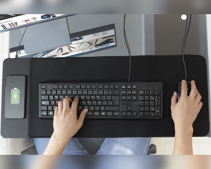 Mouse pad de carga rápida (15W) antiderrapante con función de carga wireless, puerto de carga tipo C. Es compatible con dispositivos: Samsung Galaxy S3, S4, S5, Note2, Note3, Note4, iPhone 5/5s, iPhone 6, iPhone 6 Plus y más modelos actuales adaptados al estándar Qi (verifique compatibilidad). Incluye cable de carga tipo C. Presentación: caja en color blanco.