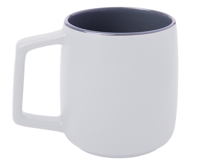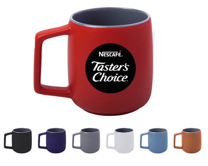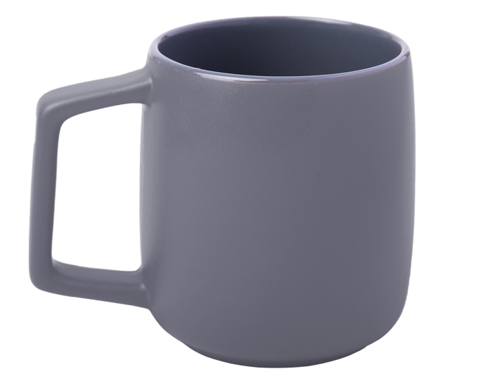Tarro con acabado mate, interior color gris y asa cuadrada. CAP. 14 OZ. Venta en múltiplos de 12.
