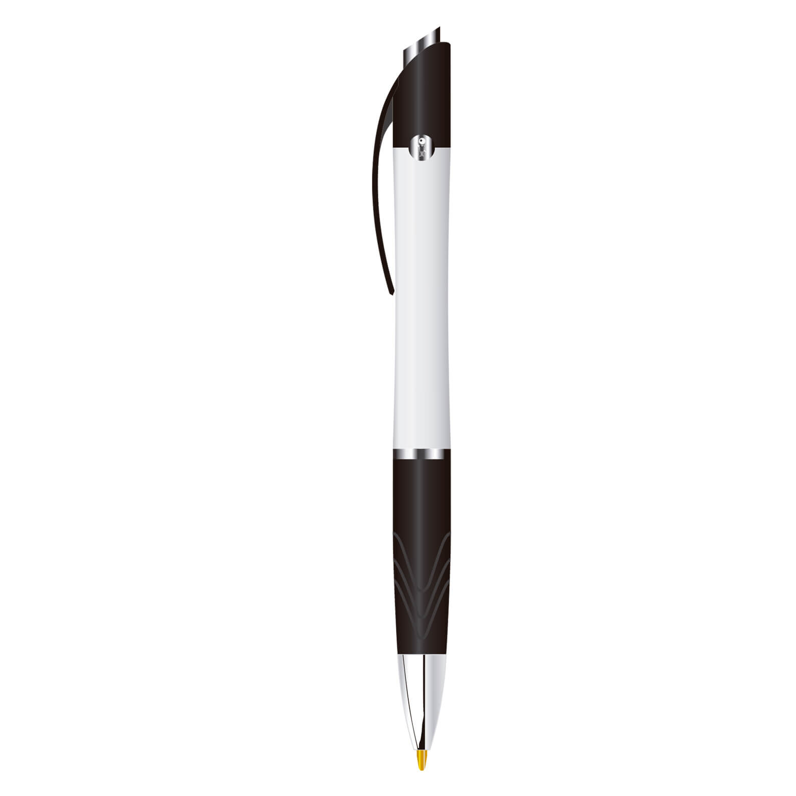 Bolígrafo de plástico de punto medio (1 mm), con grip de goma, clip y mecanismo de click.