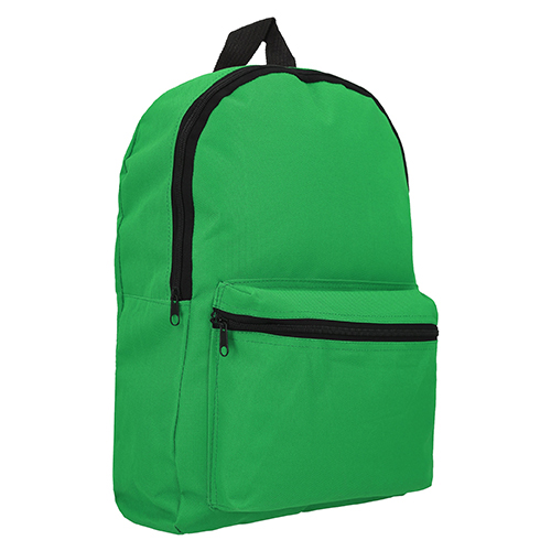 Mochila tipo back pack con bolsa principal, bolsa frontal de cierre, asa superior y correas ajustables.