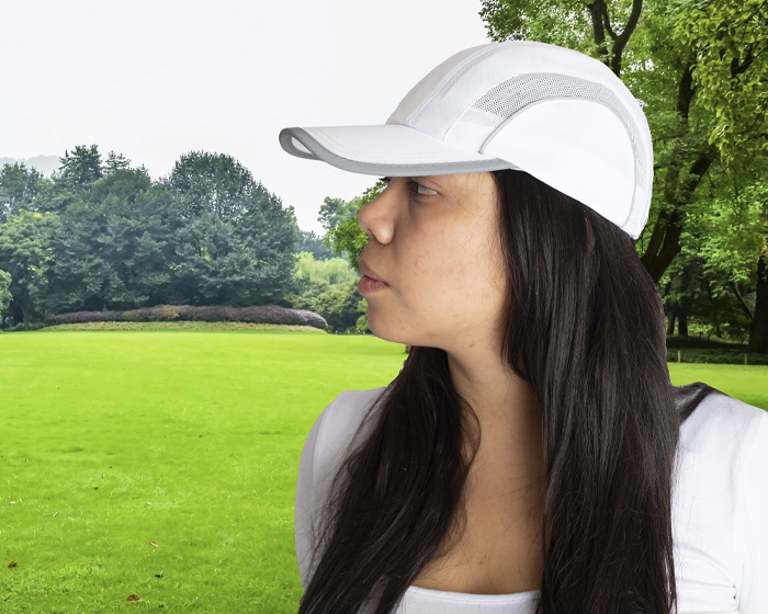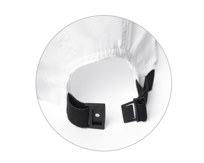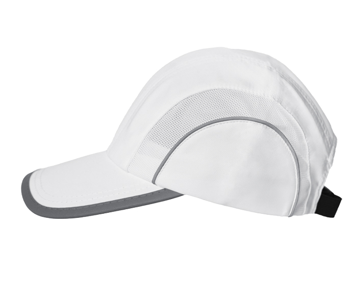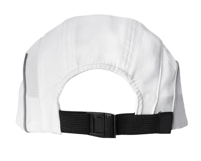Gorra deportiva de 3 gajos, con malla transpirable y de secado rápido, con orilla de tela reflejante, cuenta con broche de plástico de seguridad y cinta de resorte ajustable.
