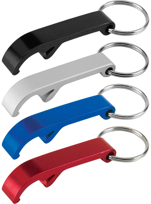 5,5 x 1 x 1,1 cm. Aluminio. Llavero que permite ser usado como destapador.