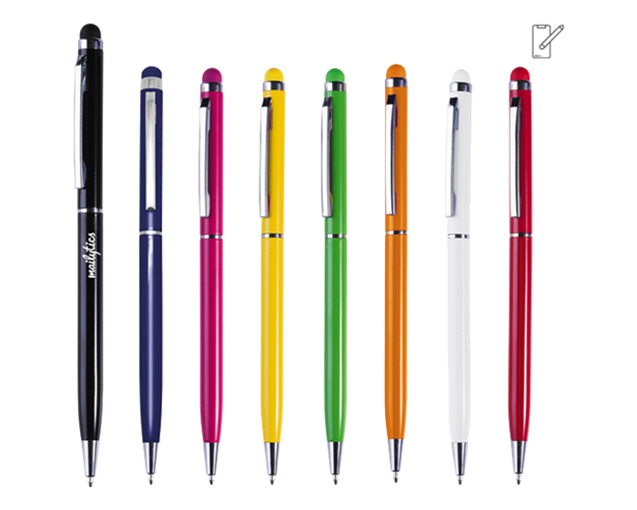 Bolígrafo metálico, con recubrimiento brillante en color. Clip, punta y detalles en color plata. Esbelto y ligero diseño que lo hace muy cómodo al escribir. Cuenta con touch para dispositivos táctiles. Mecanismo retráctil.