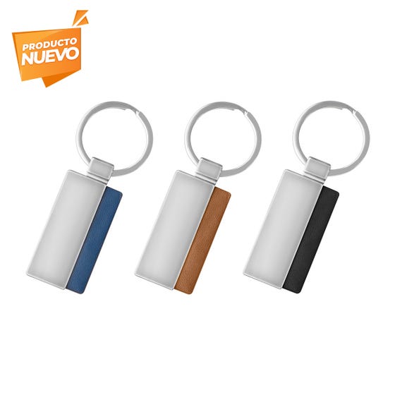 Llavero metálico combinado con curpiel. El contraste de materiales agrega un estilo sofisticado, minimalista y elegante. Incluye caja individual.